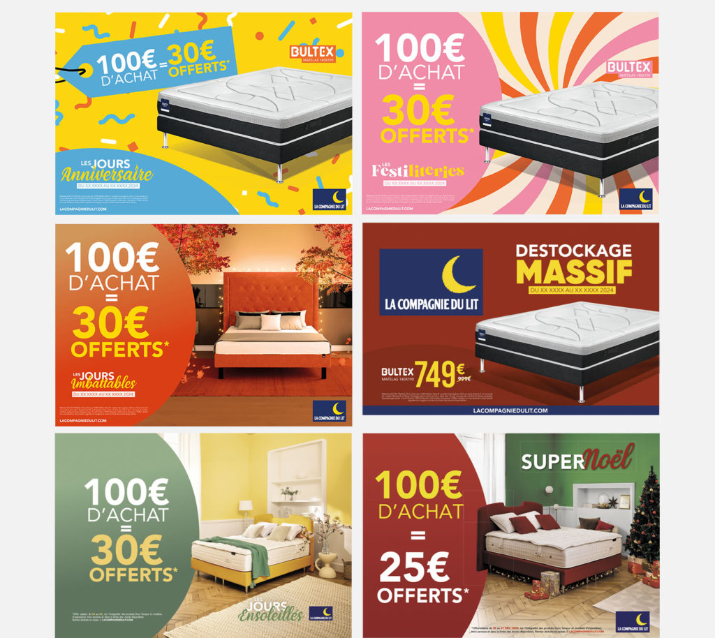 Conseil, conception et création de support de communication print et digitaux pour promouvoir les produits, les marques et les savoir-faire de La Compagnie du Lit.